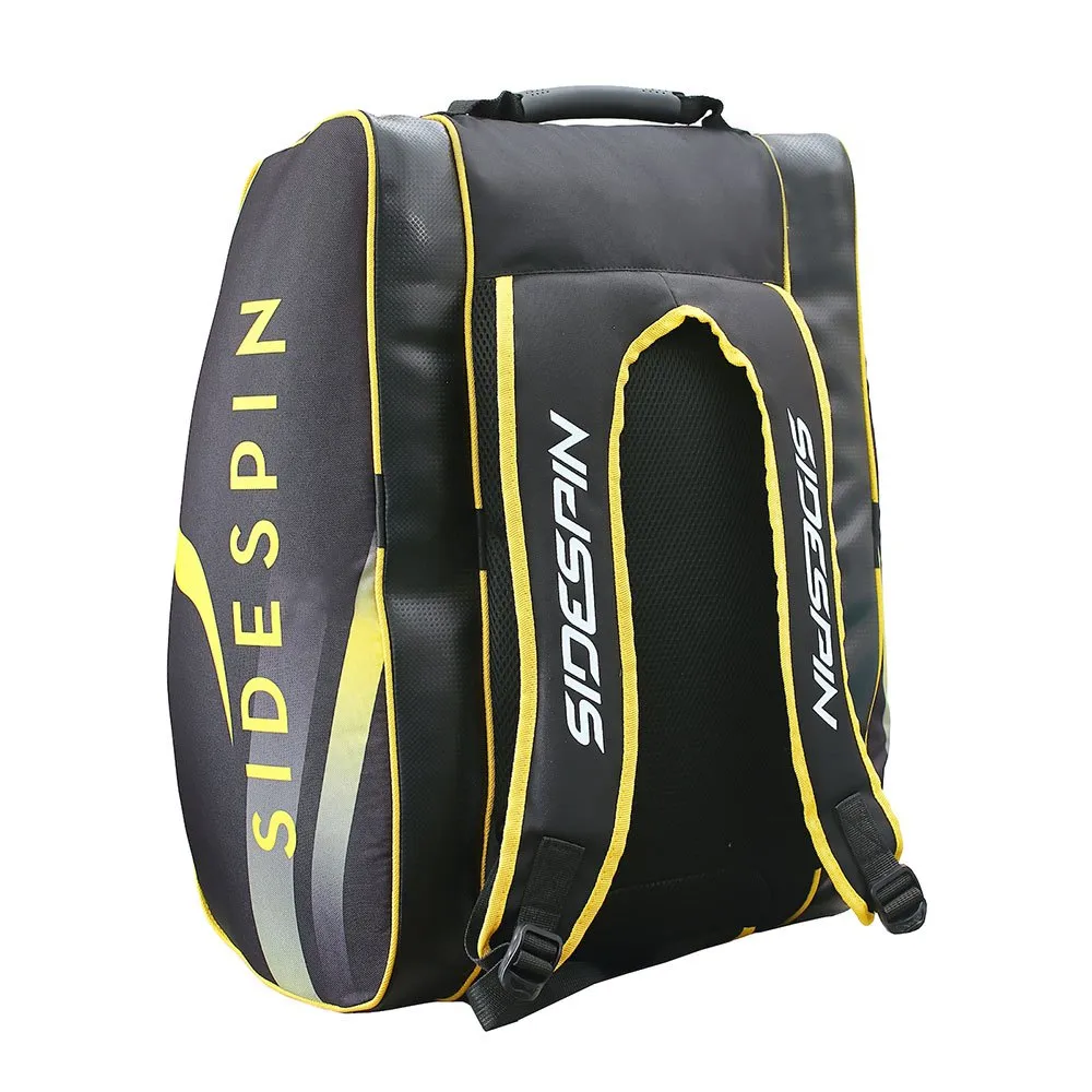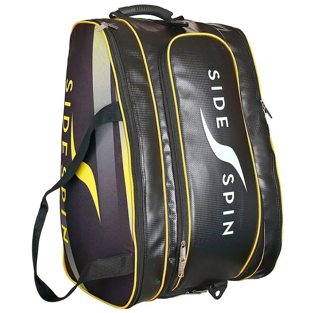 Double paddle for up to 4 blades, 2 on each side. Special pocket for shoes and / or dirty clothes and small zippered pocket for small objects. Made of nylon and plastic fabric imitating the 3K carbon so used in our blades.